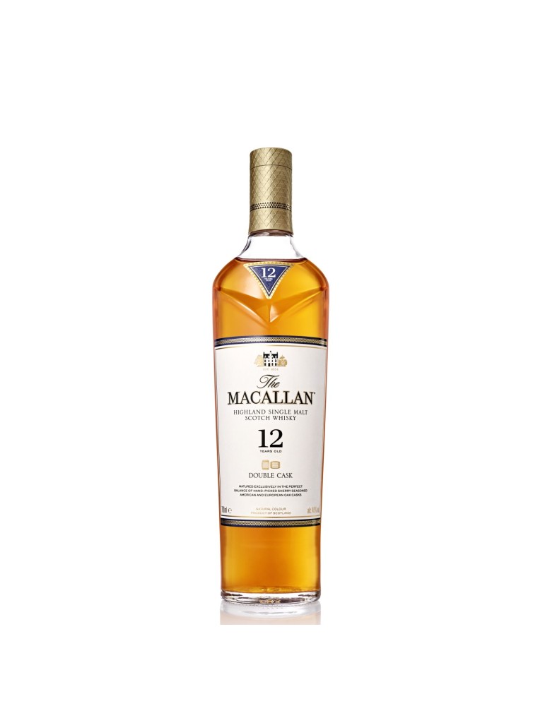 Lo scotch whisky Macallan 12 Anni Double Cask rappresenta il perfetto connubbio tra botti di rovere americano ed europeo ex sherry Oloroso, per un carattere distintivo e caldo.